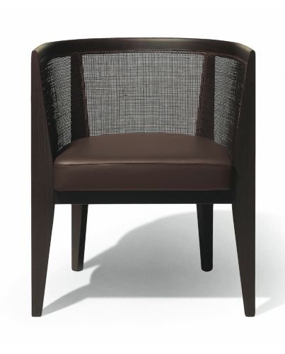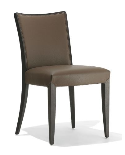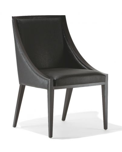 Chair with frame in solid beechwood. Upholstered seat and backrest, coated in fabric or leather. Suitable for top quality hotels and restaurants.